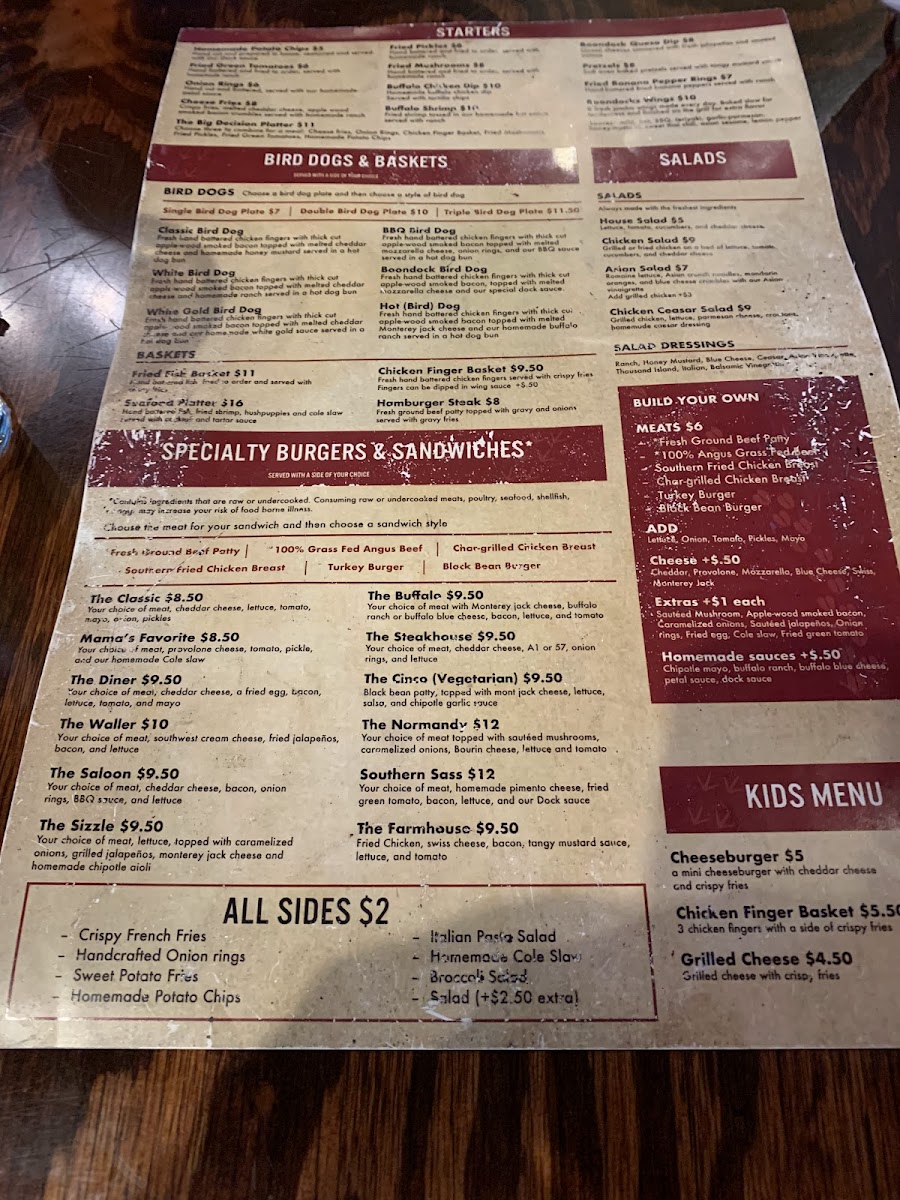 Hand battered fish, fried shrimp, hush puppies and cole slaw served with cocktail and tartar sauce. Side Choice: Broccoli Salad, Crispy French Fries, Handcrafted Onion Rings, Homemade Cole Slaw, Homemade Potato Chips