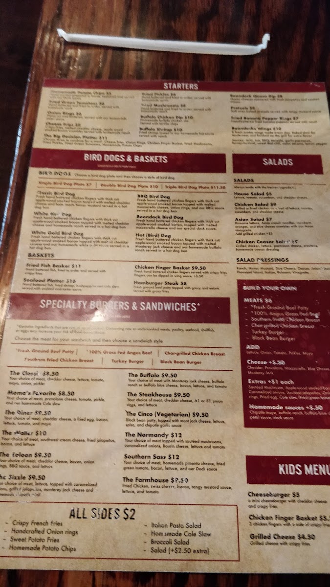 Your choice of meat, southwest cream cheese, fried jalapenos, bacon and lettuce. Side Choice: Broccoli Salad, Crispy French Fries, Handcrafted Onion Rings, Homemade Cole Slaw, Homemade Potato Chips. Meat Choice: 100% Grass Fed Angus Beef (+$2.50), Black Bean Burger, Char-Grilled Chicken Breast, Fresh Ground Beef Patty, Southern Fried Chicken Breast